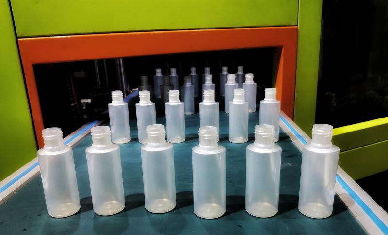 ????????本屆展會,精業機器展出了全自動一步法“注-拉-吹”機WISB-88AS,配合一出六腔的PET模具,在現場生產化妝品包裝中最常見的100ml精華液瓶,吸引了諸多目光。