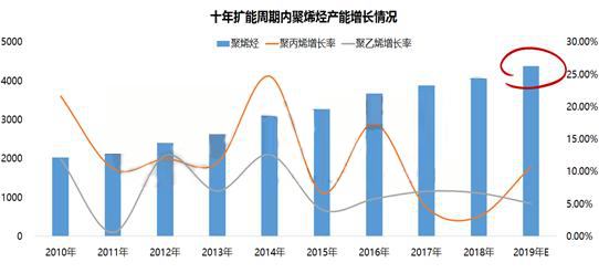 ????????隨著新型城鎮化、新型工業化、農業現代化和國際貿易發展等對聚烯烴需求的總體支撐,以及國民高質量生活、教育、醫療、養老等服務性需求提升,聚烯烴在新材料、汽車輕量化、綠色建材、醫療器械、食品級包裝、電子電器小型化等方面的應用日益廣泛。生育政策放開、人口老齡化、醫療需求增加等都刺激高品質聚烯烴樹脂需求增長,因此近幾年國內聚烯烴產能經歷了快速到高速的增長。PE非耐消費品占比在73%,PP在66%,一次性快消品的需求特征決定其需求相對穩定。