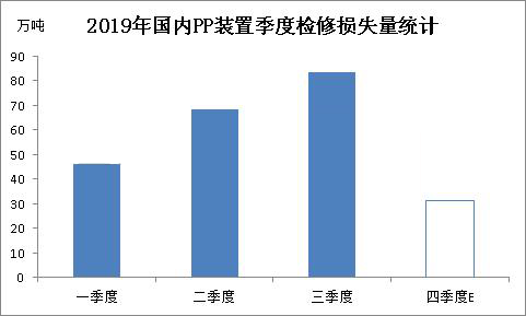 ????????上圖看可以看出,年內(nèi)前三個(gè)季度檢修損失量逐步增加,第三季度損失量高達(dá)84萬噸左右,然而據(jù)監(jiān)測(cè),第四季度國(guó)內(nèi)檢修裝置較前期明顯減少。寧波臺(tái)塑裝置檢修25天10月中旬重啟;廣州石化一三線于10月初按計(jì)劃?rùn)z修25天;寧波福基10月初檢修30-40天;大連恒力一期裝置10月底預(yù)計(jì)檢修10天左右。預(yù)計(jì)第四季度檢修損失量?jī)H僅在31萬噸。