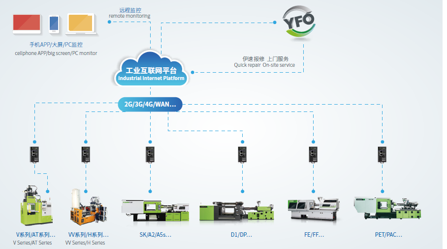 ????????工業(yè)4.0趨勢大潮之下,連接無處不在。此次K展上,伊之密工業(yè)互聯(lián)網平臺(IIoT)也是一大亮點。該平臺面向模壓成型領域,聚焦生產管理環(huán)節(jié);應用物聯(lián)網、云計算、大數(shù)據(jù)、人工智能等新一代ICT技術,解決生產企業(yè)痛點問題,提升生產效率和制品品質;為全球客戶提供專業(yè)化、低成本的智能裝備上云解決方案。