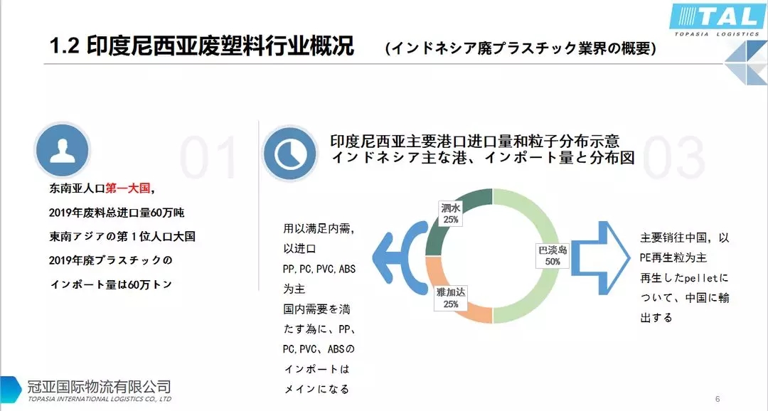 印尼人口超過2億,是東南亞第一大人口國(guó)。進(jìn)口廢塑料主要港口是雅加達(dá),泗水,巴淡島;2019年廢料總進(jìn)口量約60萬噸。