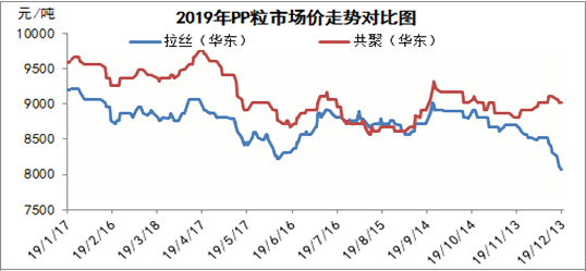 目前國內(nèi)石化庫存一直在降庫為主,多連續(xù)下調(diào)出廠降價(jià)銷售。而下游工廠采購多維持剛需,市場供需矛盾的突出,使得不少貿(mào)易商轉(zhuǎn)向觀望。2019年逐漸步入尾聲,又有兩家廠家近期不斷傳出試車的好消息:浙江石化PP裝置12月8日造粒裝置試車成功,原料為外采丙烯,該P(yáng)P裝置產(chǎn)能90萬噸/年(兩條線各45萬噸/年);其次是大連恒力二期試運(yùn)行計(jì)劃推遲在12月底試車STPP裝置,春節(jié)前后試運(yùn)行JPP裝置和乙烯裂解裝置。二期40萬噸/年(STPP和JPP線各20萬噸)。終端剛性需求縮水,高端貨源跟進(jìn)謹(jǐn)慎,行情下行明顯。