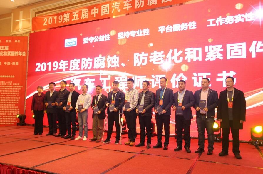 PPG大中華區(qū)一般工業(yè)漆高級(jí)商務(wù)總監(jiān)王華(右四)與PPG中國(guó)區(qū)電泳涂料技術(shù)服務(wù)經(jīng)理歐陽(yáng)澤華(右三)在第五屆中國(guó)汽車(chē)防腐蝕老化和緊固件年會(huì)中榮獲高級(jí)工程師專(zhuān)業(yè)證書(shū)