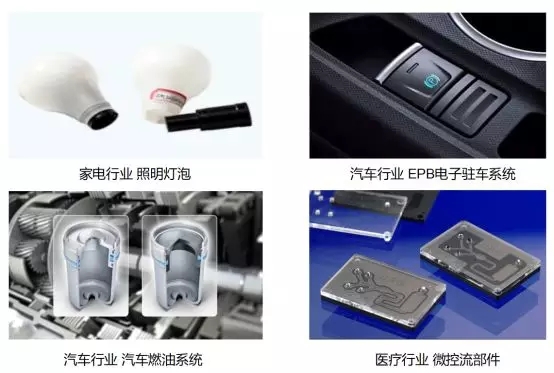 ????????比如汽車行業(yè)的汽車儀表板、車燈、燃油系統(tǒng)塑料部件、新能源汽車電池、EPB電子駐車系統(tǒng)塑料部件等;