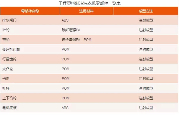 ????????洗衣機也是使用塑料件較多的家用電器之一,主要包括內(nèi)筒、底座、波輪等,一臺雙缸洗衣機使用塑料約7-12千克,全自動洗衣機可達(dá)20千克,占洗衣機總重量的30%左右。其中,使用的最多的是通用塑料PP,工程塑料用的較多的是POM、PA和ABS。