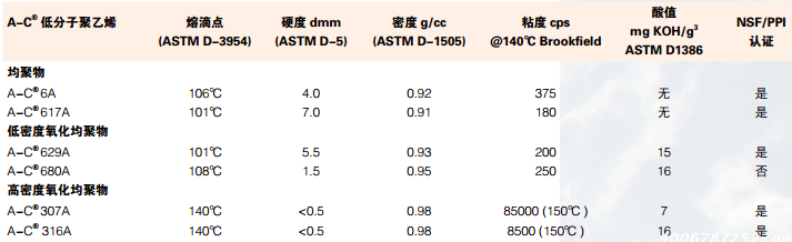 霍尼韋爾AC316A氧化聚乙烯蠟技術(shù)與應(yīng)用,性能指標(biāo)類(lèi)型高密度氧化均聚物