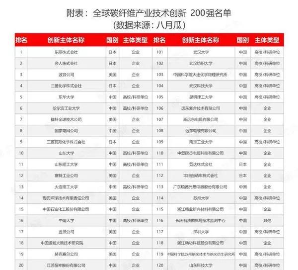 全球碳纖維產業技術創新200強報告發布